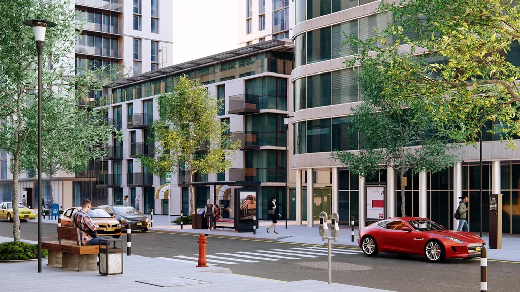 一個充滿動態美感的有機都市場景。透過流動的交通、豐富的光影變化,以及視差室內效果 (Parallax interiors),讓建築呈現出栩栩如生的真實生命力。
