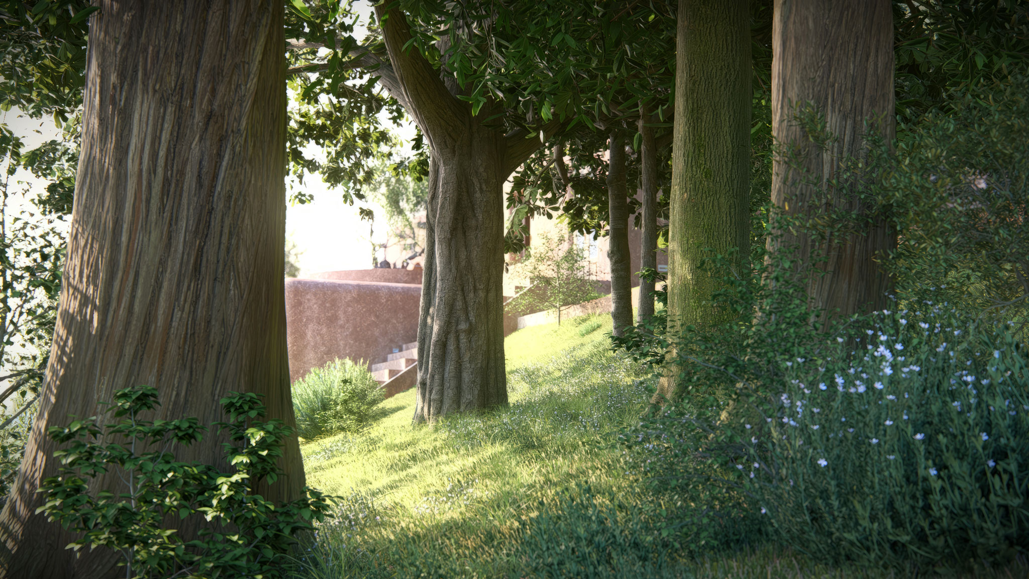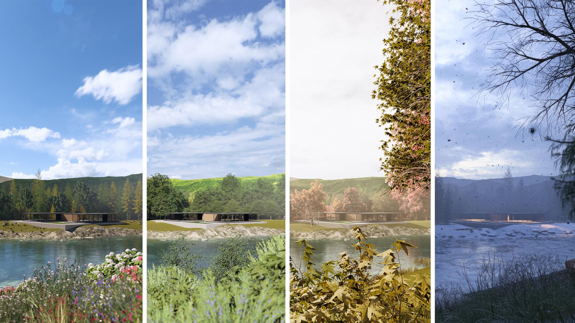 輕鬆檢視設計在春、夏、秋、冬四季中的不同樣貌,無需從頭建立環境。只需將建築放入預設的自然場景,即可即時體驗季節轉換的視覺效果。