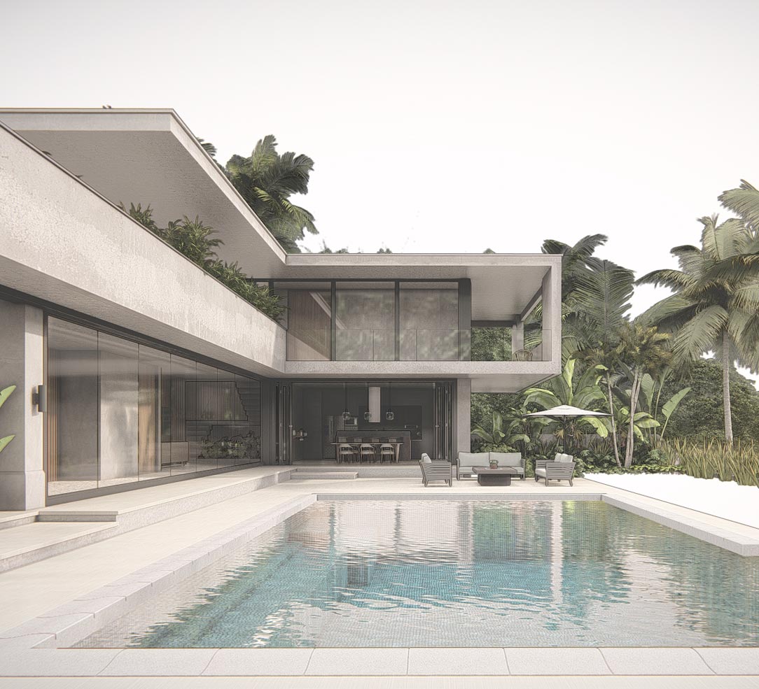 走進全新的熱帶別墅範例場景,這是一個完整細緻的住宅空間,專為體驗 Lumion 2025 新增風格而設計。搭配豐富的材質與自然景觀,營造出溫暖的海岸氛圍,是進行住宅案展示的理想範本。